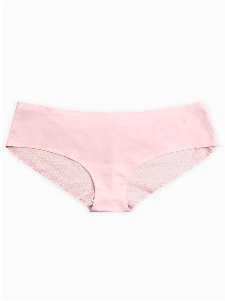 Женские трусики-шортики. Низкая посадка. Новая модель! Обработка основной ткани изделия по талии и по ноге выполнена по технологии бесшовного белья: обработка силиконовой лентой или лазерная обрезка срезов. Задняя часть изделия выполнена из тонкого прочного и оригинального кружева. На передней части изделия фестончатый край по талии.