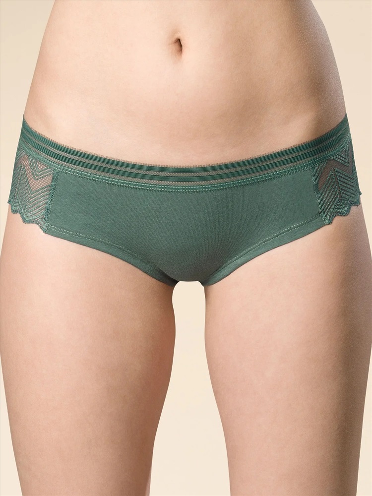 Женские трусы-шорты с низкой посадкой для влюбленных в красивый и активный образ жизни. Ткань с высоким содержанием хлопка и небольшим содержанием эластана. По линии талии мягкий принтованный эластик - не передавливает тело, не натирает кожу. Обработка по ноге двухниткой – шов не деформируется. Нежное геометричное кружево отражает тренд на умный дизайн.