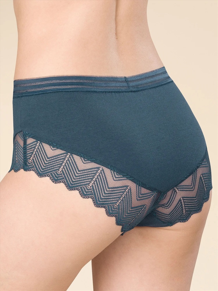 Женские трусы-шорты с высокой посадкой для влюбленных в красивый и активный образ жизни. Ткань с высоким содержанием хлопка и небольшим содержанием эластана. По линии талии мягкий принтованный эластик - не передавливает тело, не натирает кожу. Обработка по ноге двухниткой – шов не деформируется. Нежное геометричное кружево отражает тренд на умный дизайн.
