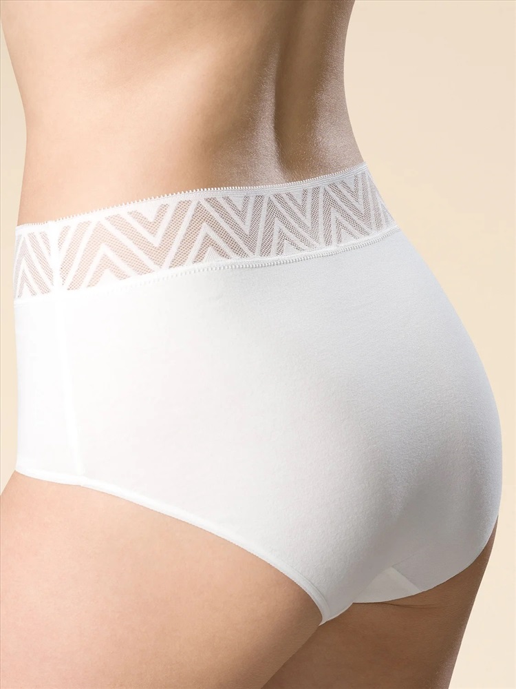 Женские трусы-шорты с высокой посадкой. Приятная на ощупь ткань с высоким содержанием хлопка и небольшим содержанием эластана – трусы сохраняют форму и не выцветают даже после частых стирок. Широкая обработка по линии талии мягким кружевным эластиком – не вызывает дискомфорта и не передавливает тело. Нежное геометричное кружево актуально в этом сезоне. Модель подчеркивает изящество фигуры и создаёт комфорт. Идеально подходят для повседневной носки, для сна и для романтических встреч.