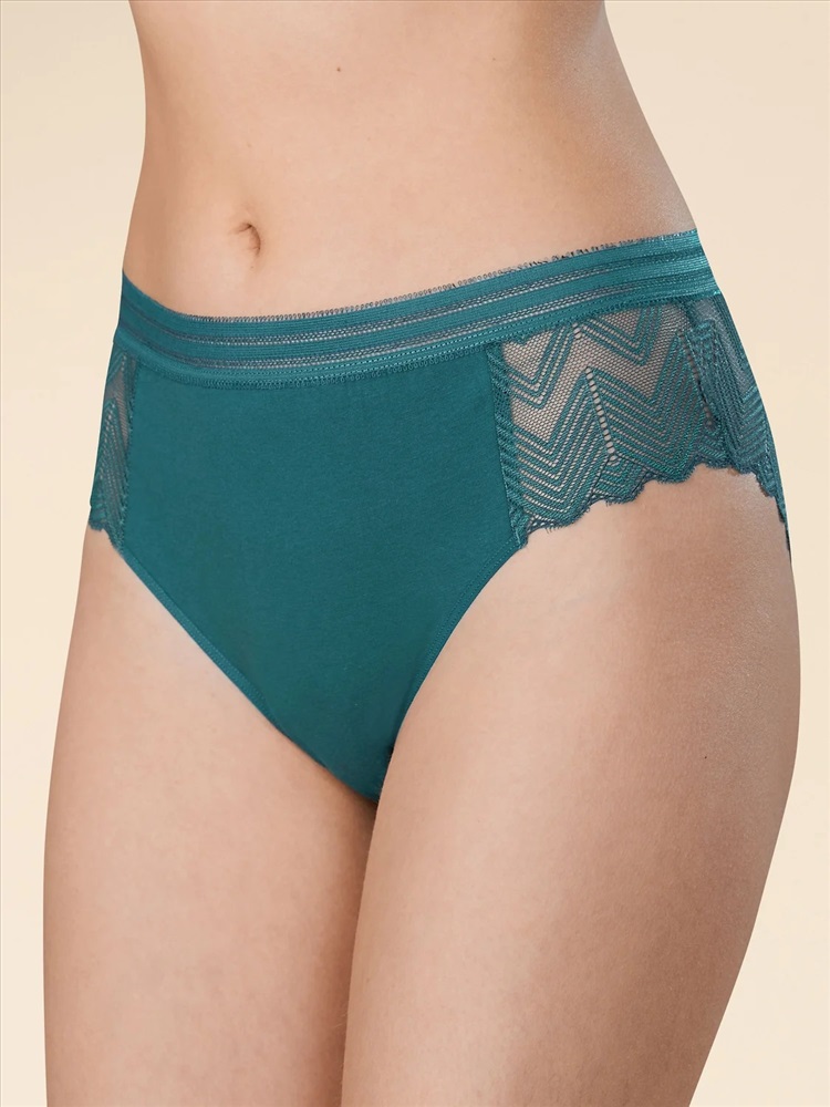 Женские трусы-слипы с высокой посадкой для влюбленных в красивый и активный образ жизни. Ткань с высоким содержанием хлопка и небольшим содержанием эластана. По линии талии мягкий принтованный эластик - не передавливает тело, не натирает кожу. Обработка по ноге эластиком для сохранения формы. Нежное геометричное кружево отражает тренд на умный дизайн. Модель представлена в универсальных цветах – черный, молочный, красный, зеленый, морская волна и пудра. Выбирайте нужный размер по таблице размеров на фото. Цвет товара на экране вашего устройства может отличаться от цвета изделия вживую. Товар возврату и обмену не подлежит.