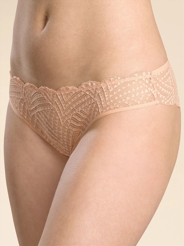Женские кружевные трусы-танга с низкой посадкой для влюбленных в красивый образ жизни. Эластичная и мягкая ткань позволяет избежать натираний и неудобств, кожа дышит. Кружево с фестонным краем подчеркивает изящные линии тела и придает модели романтичные нотки. Нежный кружевной узор придает женственности и изысканности. Вы можете создавать разные образы по настроению - от повседневных и классических, до соблазнительных.