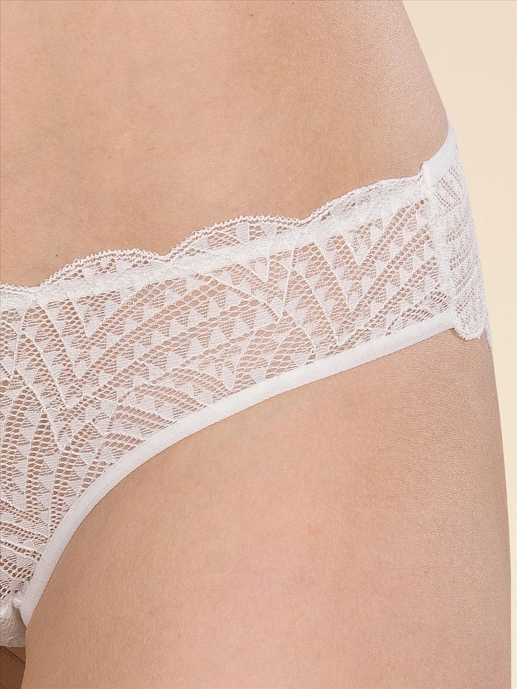 Женские кружевные трусы-танга с низкой посадкой для влюбленных в красивый образ жизни. Эластичная и мягкая ткань позволяет избежать натираний и неудобств, кожа дышит. Кружево с фестонным краем подчеркивает изящные линии тела и придает модели романтичные нотки. Нежный кружевной узор придает женственности и изысканности. Вы можете создавать разные образы по настроению - от повседневных и классических, до соблазнительных.
