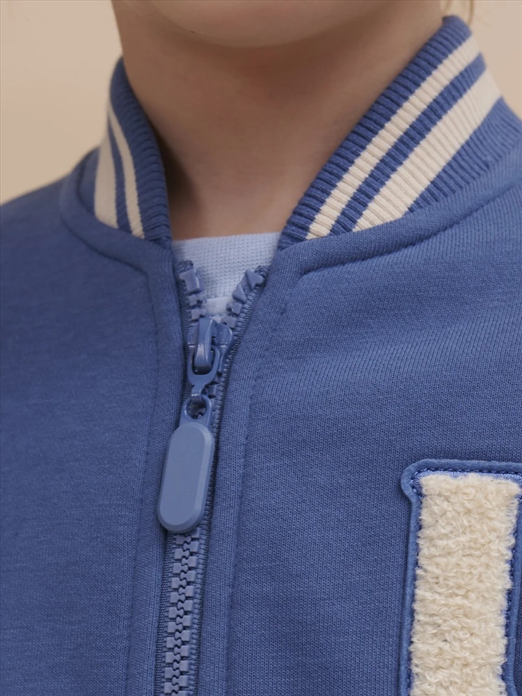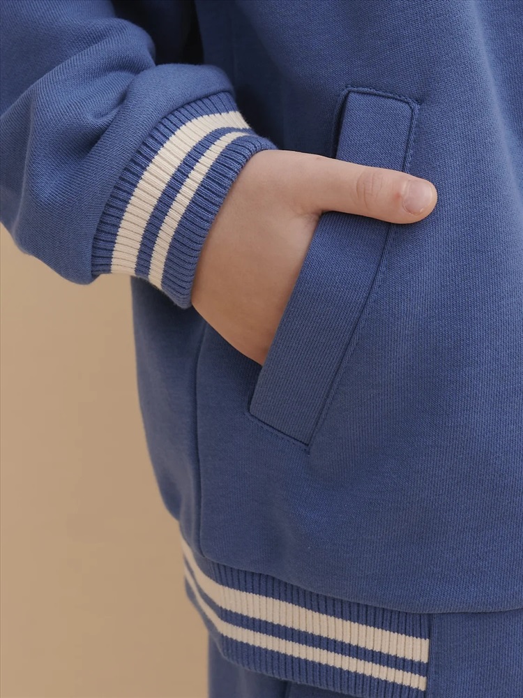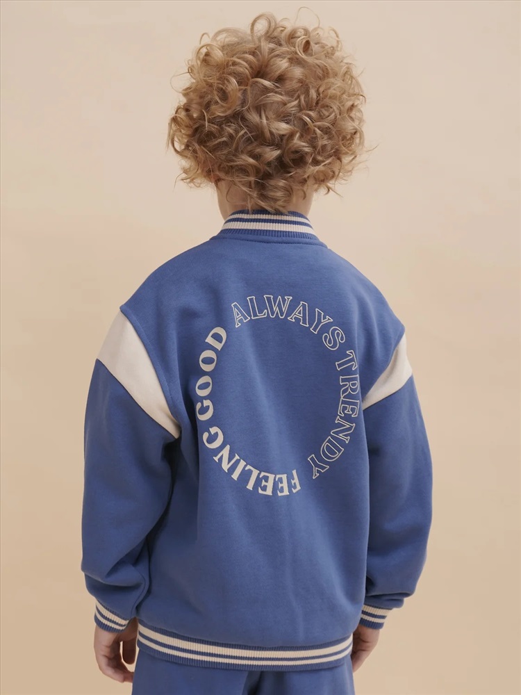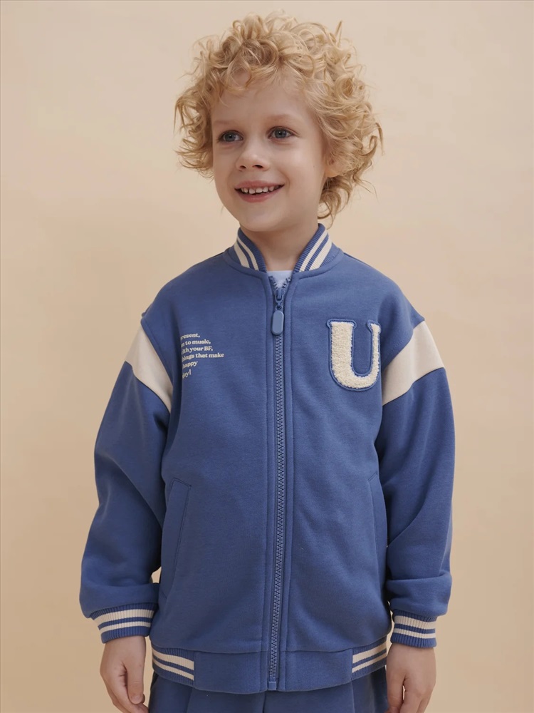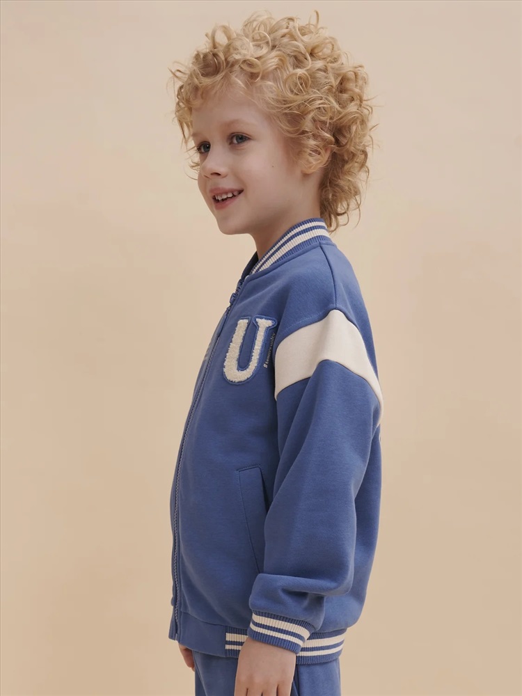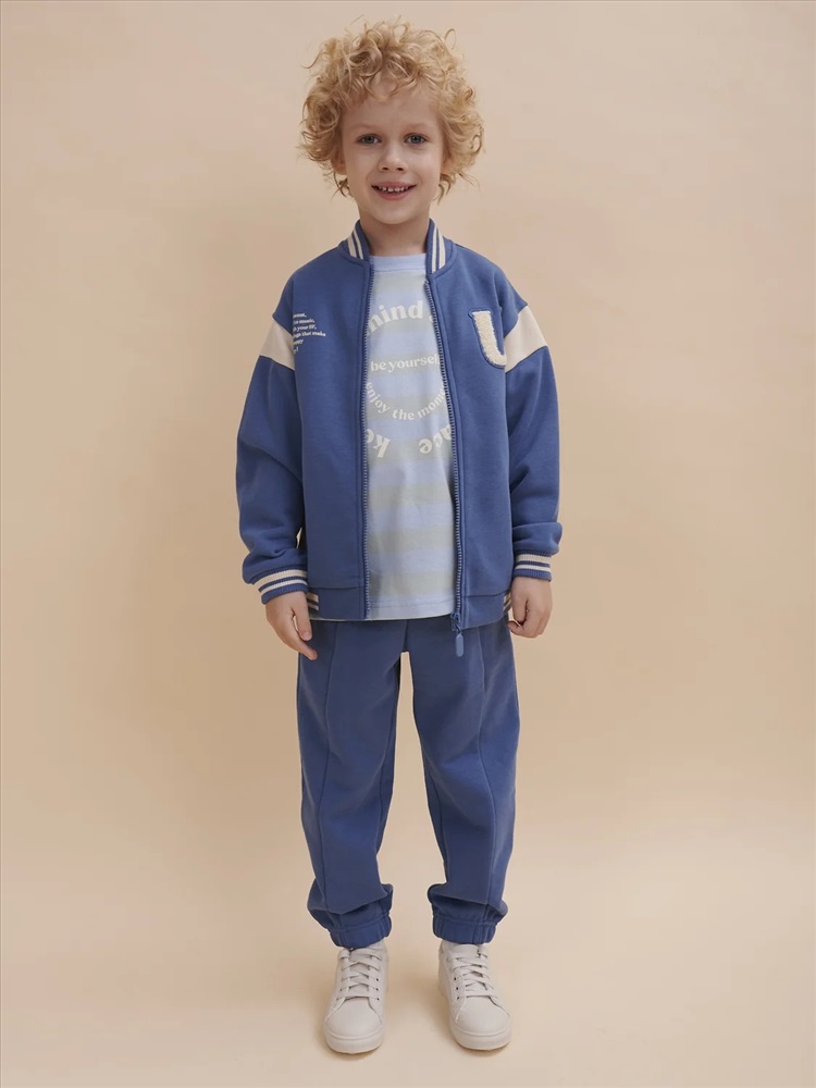 Бомбер для мальчика – трикотажная модель свободного кроя на позднюю весну, лето. Уютная вещь для создания стильного образа. Жакет для мальчика легко сочетать с любым низом, использовать для многослойных образов. Куртка бомбер для мальчика идеальна в качестве плотной кофты для прохладного помещения. Трикотажная куртка выполнена из смесовой ткани с высоким содержанием хлопка и небольшим добавлением полиэстера. Материал хорошо пропускает воздух, обеспечивает здоровую гигроскопичность. Ребенок не потеет и комфортно чувствует себя во время активных игр и занятий спортом. Наличие полиэстера наделяет жакет для мальчика повышенной износоустойчивостью к усадке, защитой от образования катышек. Изделие не линяет после стирки и сохраняет красивый внешний вид. Детский бомбер на центральной застежке молнии, со спущенным плечом и углубленной проймой. Воротник, манжеты по рукавам и низу изделия - из декоративного полосатого риба – стильная резинка в университетском стиле. На рукавах вставки из основного материала контрастного цвета. Боковые карманы с листочками расположены на переде под наклоном. Детский жакет для мальчика украшен модным университетским шрифтом с засечками. Перед декорирован нашивкой – объемной мягкой аппликацией из бербер-флиса (барашек) и графичной шрифтовой композицией. Меховая нашивка буквой "U": unity – перевод "единство, командная сплоченность". Надпись: "Be present, listen to music, be with you BF, do things that make you happy #enjoy!" - перевод "Живи в моменте, слушай музыку, встречайся со своим лучшим другом, делай то, что делает тебя счастливым #наслаждайся!". На спине круговая шрифтовая композиция: "Feeling good always trendy" - перевод "Хорошее настроение всегда в тренде (модно)". Куртка бомбер для мальчика подростка представлена в размере для малышей и школьников. Размерная линейка: 1 (86): 2 (92): 3 (98): 4 (104): 5 (110): 6 (116): 7 (122): 8 (128): 9 (134): 10 (140): 11 (146). Бомбер для мальчика - отличный подарок для сына, внука, братика, племянника, крестника! Выбирайте нужный размер по таблице размеров на фото. Цвет товара на экране вашего устройства может отличаться от цвета изделия вживую.