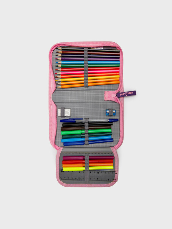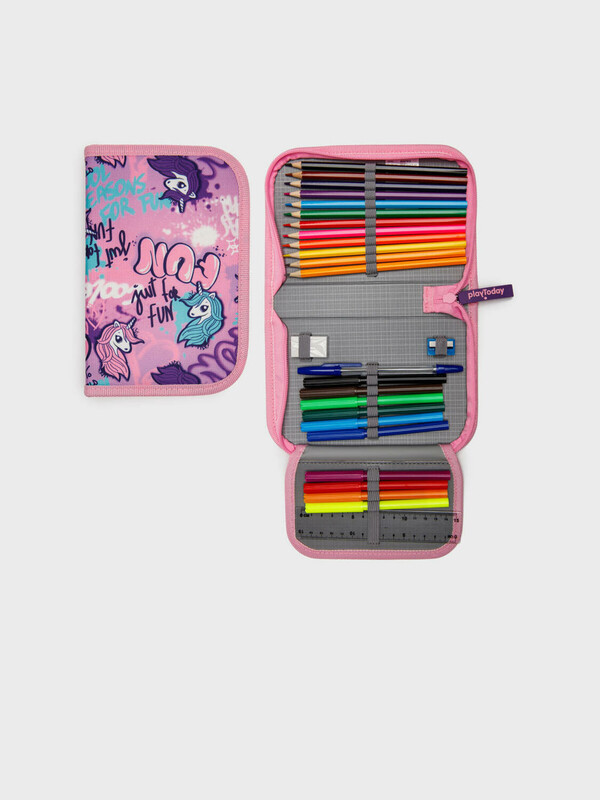 • Цветные карандаши с прочным грифелем 10 шт. • Простые карандаши 2 шт. • Фломастеры 10 шт. • Шариковая ручка 1 шт. • Линейка 1 шт. • Ластик 1 шт. • Точилка 1 шт. 100% полиэстер Комментарии к товару