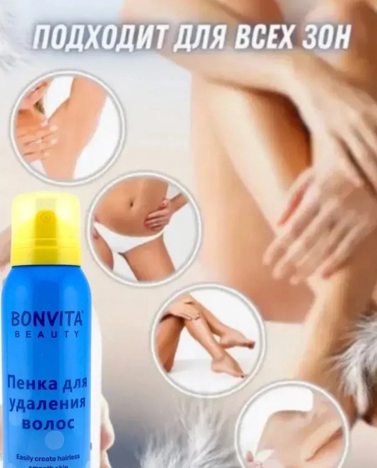 Спрей для удаления волос Бонвита - это обогащенное витаминами, средство уходовой косметики, который удаляет волосы до корней без боли и дискомфорта.