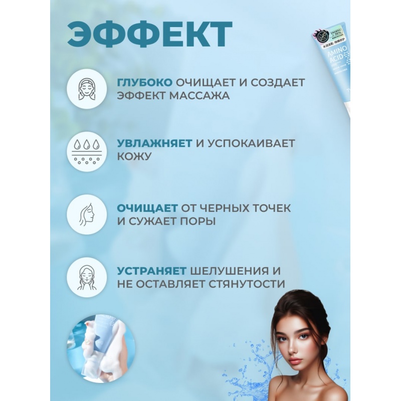 Очищающая пенка для лица с удобной массажной щеткой подойдет для всех типов кожи: жирной или сухой, нормальной или комбинированной, чувствительной, проблемной. Прекрасно очищает кожу и дарит ощущение увлажненности. Даже после смывания активная сыворотка будет продолжать действовать, делая последующие процедуры по уходу за лицом более эффективными. Щетинки мягко массируют кожу, а длительное использование щетки может предотвратить появление морщин. Пена не высыхает и не вызывает аллергических реакций. Пенка для умывания лица содержит очищенные ингредиенты снежного лотоса и аминокислот, которые смягчают, восполняют кожу питательными веществами. Имеет нежную и плотную текстуру, которая способствует эффективному очищению кожи, после которого не останется чувства стянутости. Пенку можно использовать в качестве средства для снятия макияжа. При регулярном использовании ваша кожа станет мягкой, эластичной и увлажнённой, а количество черных точек уменьшится, поры сузятся. Способ применения Перед применением пенки для умывания лица встряхните флакон и легким нажатием выдавите пенку. Нанесите на лицо и мягко помассируйте кожу, избегая области вокруг глаз. Остатки пенки удалите водой. Повторного умывания не требуется - очищение происходит в один этап. Для снятия макияжа, помассируйте пенкой область вокруг глаз руками и смойте водой. Щеточка для умывания станет дополнительным помощником для очищения лица. Комментарии к товару