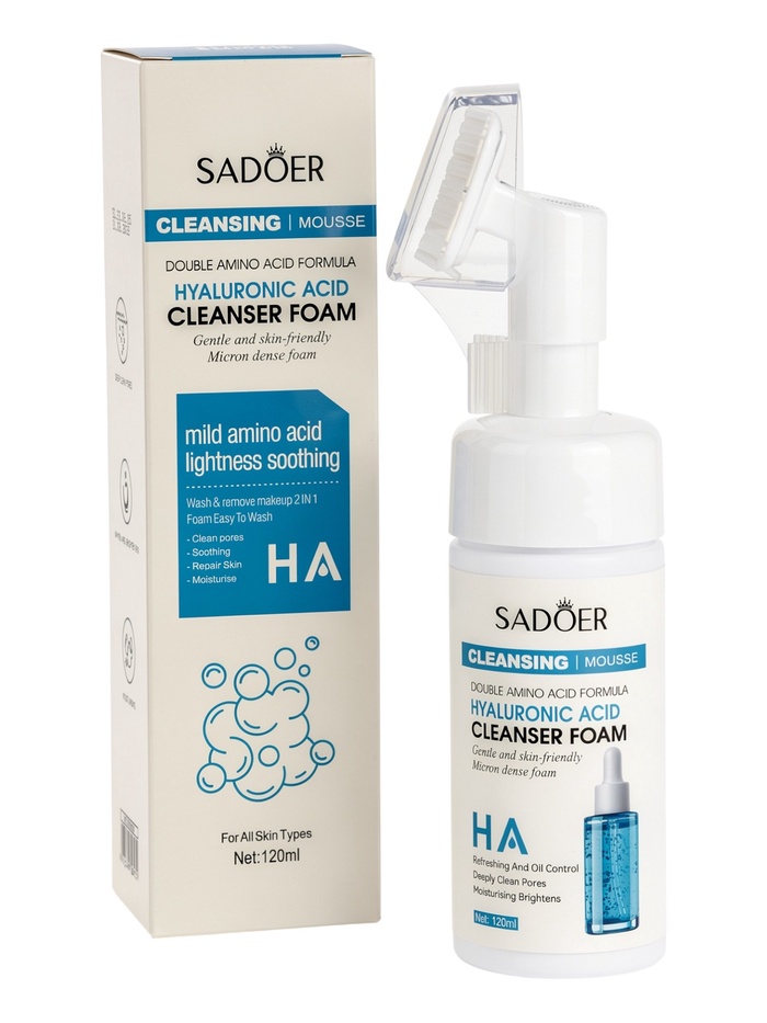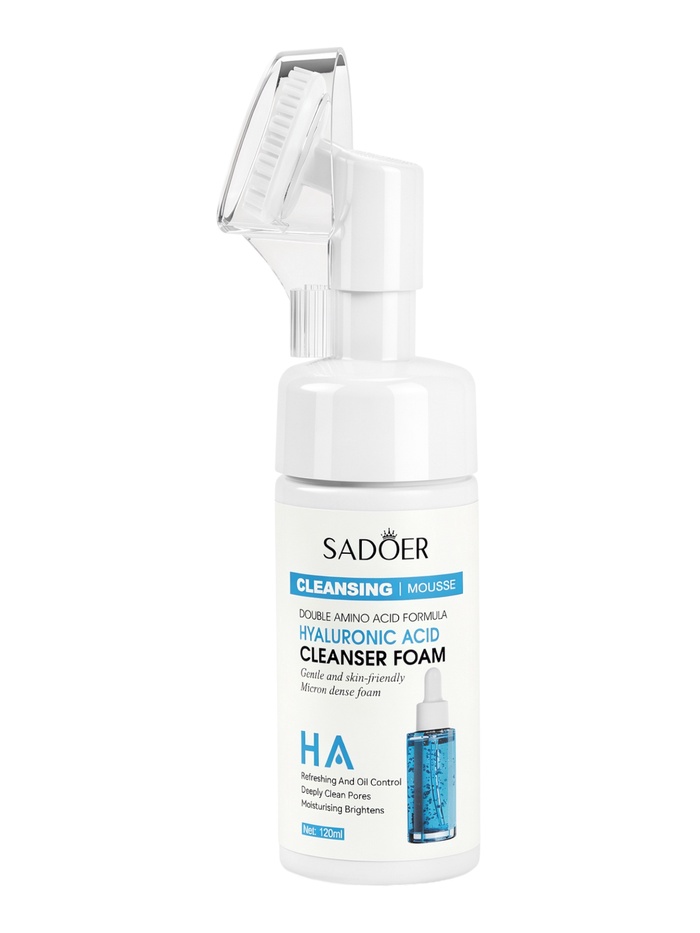 Габариты: 5,5 x 5,5 x 20 Страна: Китай В боксе: 96 шт Состав: См. на упаковке Материалы: см. на упаковке Фасовка: по 1 шт Индивидуальная упаковка: Без упаковки Сертификат: ЕАС Тип кожи: Для всех типов Пенка для умывания с гиалуроновой кислотой и встроенной щеткой — это эффективное средство для бережного очищения кожи лица с выраженным увлажняющим действием. Продукт сочетает в себе мягкую очищающую формулу и удобный массажный аппликатор, обеспечивая коже комфорт и ухоженный внешний вид уже после первого применения. Легкая воздушная пена мягко удаляет загрязнения, остатки макияжа и излишки кожного себума, не нарушая естественный защитный барьер кожи. Встроенная щетка с мягкими и гибкими щетинками способствует более глубокому очищению пор и легкому массажу, улучшая микроциркуляцию и помогая коже выглядеть более свежей и ровной. Гиалуроновая кислота известна своей способностью удерживать влагу в коже, помогая поддерживать оптимальный уровень увлажнения, повышать эластичность и предотвращать ощущение сухости и стянутости. При регулярном использовании пенка делает кожу более гладкой, мягкой и упругой, придавая ей здоровое сияние. Средство подходит для ежедневного применения, легко смывается и оставляет приятное ощущение чистоты и комфорта без липкости. Удобный формат флакона объемом 120 мл обеспечивает экономичный расход и делает пенку практичной как для домашнего ухода, так и для поездок. Способ применения: