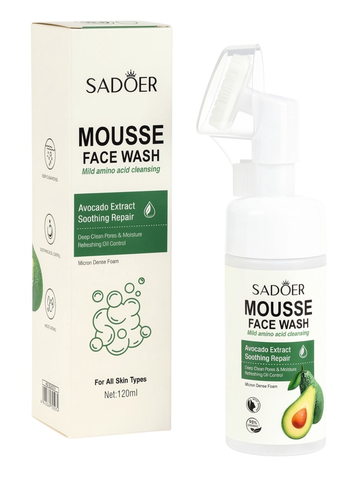 Габариты: 5,5 x 5,5 x 20 Страна: Китай В боксе: 96 шт Состав: См. на упаковке Материалы: см. на упаковке Фасовка: по 1 шт Индивидуальная упаковка: Без упаковки Сертификат: ЕАС Тип кожи: Для всех типов Пенка для умывания с экстрактом авокадо и встроенной щеточкой — это мягкое и эффективное средство для ежедневного очищения кожи лица с питательным и ухаживающим действием. Продукт создан для бережного ухода, сочетая глубокое очищение и комфорт даже для кожи, склонной к сухости и чувствительности. Нежная воздушная пена эффективно удаляет загрязнения, излишки кожного себума, остатки макияжа и пыль, скопившиеся в порах, не пересушивая кожу и не вызывая ощущения стянутости. Встроенная щеточка с мягкими, эластичными щетинками обеспечивает дополнительное очищение и легкий массаж, способствуя улучшению микроциркуляции и более ровному, свежему цвету лица. Экстракт авокадо богат витаминами и питательными компонентами, которые помогают поддерживать естественный баланс кожи, способствуют её смягчению и восстановлению. Он помогает уменьшить ощущение сухости, делает кожу более гладкой, эластичной и ухоженной. При регулярном применении пенка способствует улучшению текстуры кожи и поддержанию её здорового внешнего вида. Средство подходит для ежедневного применения, не нарушает естественный pH-баланс кожи и легко смывается водой. Удобный формат флакона объемом 120 мл обеспечивает экономичный расход и делает пенку практичной как для домашнего ухода, так и для поездок. Способ применения: