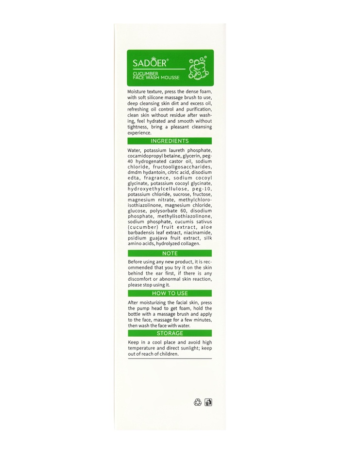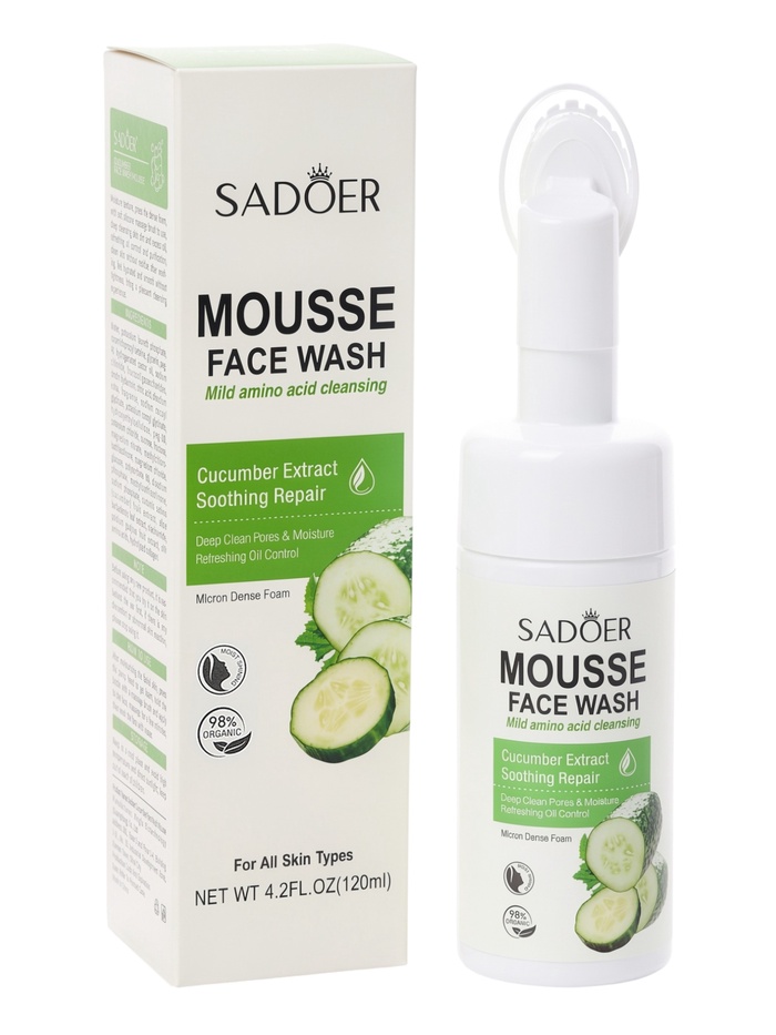 Габариты: 5,5 x 5,5 x 19,5 Страна: Китай В боксе: 96 шт Состав: См. на упаковке Материалы: см. на упаковке Фасовка: по 1 шт Индивидуальная упаковка: Без упаковки Сертификат: ЕАС Тип кожи: Для всех типов Пенка для умывания с экстрактом огурца и встроенной щеточкой — это освежающее и бережное средство для ежедневного очищения кожи лица. Формула разработана для мягкого ухода, направленного на поддержание чистоты, комфорта и естественной свежести кожи, делая умывание приятным и эффективным этапом ежедневного ухода. Легкая воздушная пена мягко удаляет загрязнения, остатки макияжа и излишки кожного себума, не пересушивая кожу и не нарушая её естественный защитный барьер. Встроенная щеточка с мягкими и эластичными щетинками обеспечивает дополнительное очищение пор и легкий массаж, способствуя улучшению микроциркуляции и более ровному, свежему тону лица. Экстракт огурца известен своими освежающими и смягчающими свойствами. Он помогает увлажнять кожу, уменьшать ощущение усталости, придаёт коже мягкость и ощущение комфорта. При регулярном использовании пенка способствует поддержанию естественного баланса кожи, делая её более гладкой и ухоженной. Средство легко смывается водой, не оставляет липкости и чувства стянутости, подходит для ежедневного применения утром и вечером. Удобный формат флакона объемом 120 мл обеспечивает экономичный расход и делает пенку практичной как для домашнего использования, так и для поездок. Способ применения: