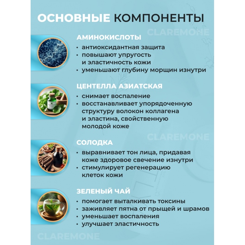 Пенка-мусс для умывания с аминокислотами TlyaПенка-мусс с аминокислотами — это универсальное средство для глубокого и бережного очищения кожи. Подходит для всех типов кожи, включая чувствительную, сухую и склонную к высыпаниям. Нежная густая пена эффективно удаляет загрязнения, макияж и излишки себума, не нарушая липидный баланс кожи. Средство освежает, увлажняет и тонизирует кожу, выравнивая её тон и оставляя ощущение чистоты и комфорта. Преимущества: Глубоко очищает кожу и поры. Удаляет остатки макияжа и контролирует жирность кожи. Не сушит и не стягивает кожу, сохраняя её естественный баланс. Подходит для кожи с высыпаниями, чувствительной и сухой. Увлажняет, тонизирует и освежает. Выравнивает тон кожи и придаёт ей здоровый вид. Основные компоненты: Аминокислоты — мягко очищают кожу, сохраняя её защитный барьер. Центелла азиатская — успокаивает и восстанавливает кожу. Солодка — осветляет кожу и выравнивает её тон. Зелёный чай — борется с воспалениями и тонизирует кожу. Результат: Чистая, свежая и увлажнённая кожа. Отсутствие жирного блеска и ощущение комфорта. Выравненный тон и гладкость кожи. Способ применения: 1. Перед использованием встряхните флакон. 2. Выдавите нужное количество пенки на ладонь. 3. Нанесите пену на влажное лицо и аккуратно помассируйте круговыми движениями. 4. Смойте средство тёплой водой. 5. Используйте ежедневно.