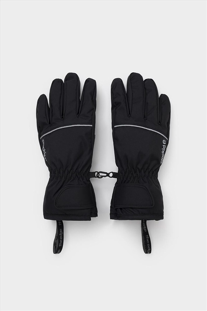 Детские утеплённые перчатки из однотонной мембранной ткани со вставками из искусственной кожи. Манжеты регулируются по ширине с помощью липучки. Мягкий подклад из флиса. Пластиковый карабин для скрепления перчаток между собой. Светоотражающие элементы.