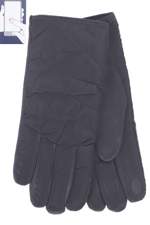 Перчатки мужские сенсорные (нашивка на кончике указательного пальца). Комбинированные: верх - курточная ткань на плюшевом подкладе + тонкий слой синтепона, ладонь - иск. замша на плюшевом подкладе.
