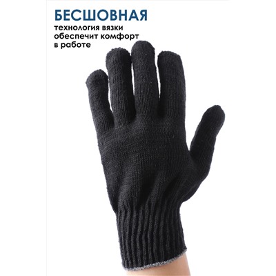 Перчатки трикотажные вязаные из х/б смесовой пряжи с добавлением полиэфирной нити. Выполнены из 70% хлопка 30% полиэфира, покрытие: ПВХ, класс 10, пяти нитка, цвет: чёрный, в упаковке: 5 пар