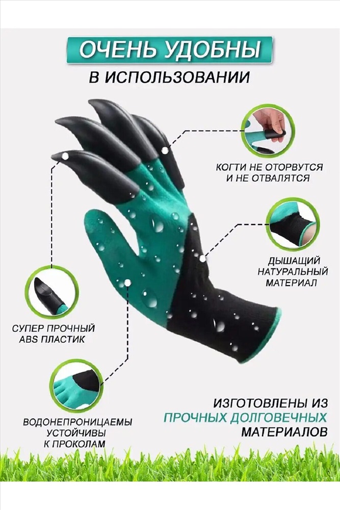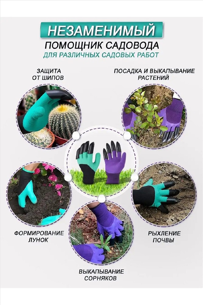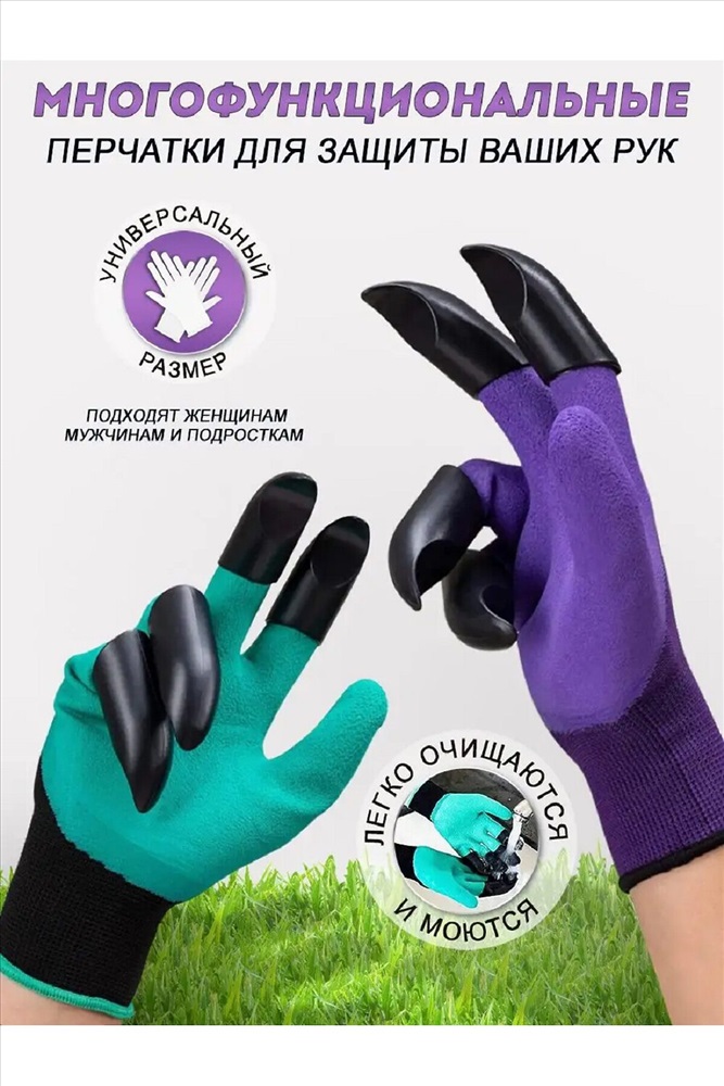 ID товара: 983103 Сезон: Демисезон Садовые перчатки с когтями для огорода дополнены специальными наконечниками на правой перчатке, которые позволяют обойтись без тяпки и грабель, что значительно облегчает работы на Вашем участке. Перчатки отлично заменяют тяжёлый садовый инвентарь, вы легко и быстро посадите в землю семена и саженцы, разрыхлите грядки, окучите растения, сделаете ямки, раскопаете лунки, помогут в вырывании корней и сорняков, уборке. Перчатки хорошо тянутся, они удобно сядут на любую руку, не сползут и не позволят земле засыпаться внутрь, что сохранит Ваши руки чистыми, а так как они влагостойкие, то даже в сырую погоду или при поливе. Комментарии к товару