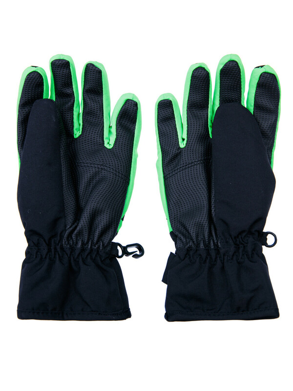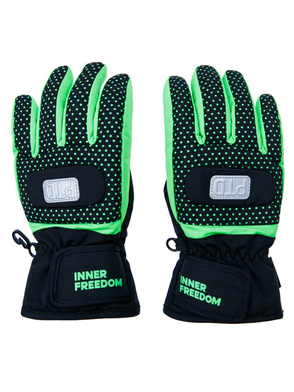 Зимние перчатки с мембраной. Утеплитель – синтепон. Мягкая ладошка из влагостойкого полиуретана. Регулируемая застёжка с липучкой по запястью. Застежка для скрепления пары между собой. Светоотражающие элементы.