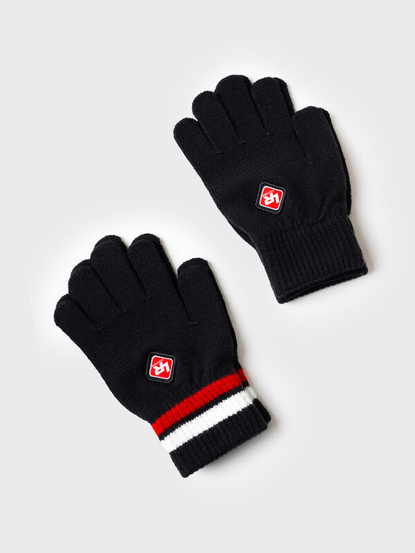 Набор из 2 пар трикотажных перчаток для мальчика подростка. Выполнены из эластичной чёрной пряжи. Манжета украшена тремя цветными полосами: красной, белой и чёрной. На тыльной стороне каждой перчатки — силиконовая нашивка с логотипом. Мягкие, удобные, хорошо тянутся и плотно облегают руку. Отлично подойдут для осени и весны — в школу, на прогулку или для активного отдыха.