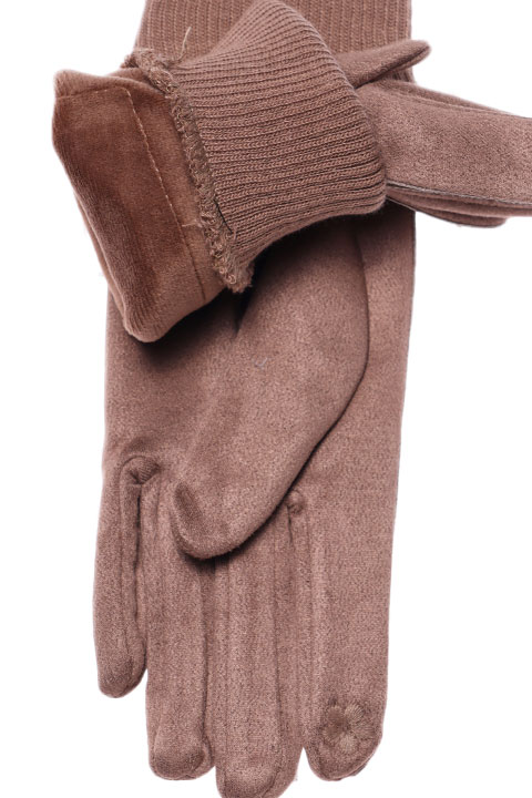 Перчатки женские сенсорные (нашивка на кончике указательного пальца). Комбинированные: ладонь иск.замша на основе велюра, сверху - эко-кожа. Размер универсальный: 7,5-8. Производство Китай.