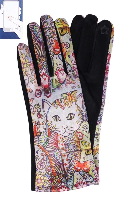 Перчатки женские из иск.замши на велюровой основе. Сенорные (нашивка на кончике указательного пальца).