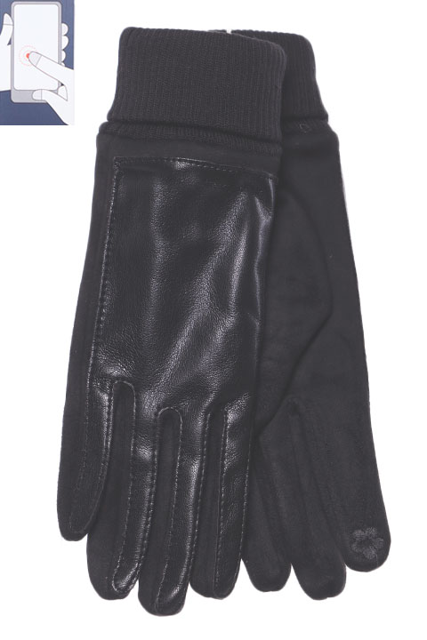 Подклад: Велюр Тип изделия: Перчатки Состав: Иск. кожа Место: *8П6-2-К3 Перчатки женские сенсорные (нашивка на кончике указательного пальца). Комбинированные: ладонь иск.замша на основе велюра, сверху - эко-кожа. Комментарии к товару