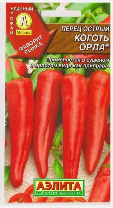 Cреднеспелый сорт, период от полных всходов до технической спелости 125-130 дней, рекомендован для выращивания в открытом грунте и в пленочных укрытиях. Плоды хоботовидной формы, темно-красные, слегка изогнутые, глянцевые, имеют сильный перечный аромат и острый вкус. Используется как приправа для супов, соусов, мясных блюд и консервов. Применяется как в свежем, так и в сушеном и молотом виде. Фасовка 0,1г Комментарии к товару
