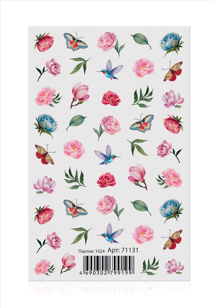 Срок годности: не ограничен СоставПереводная бумага, защитная пленка, краска. Способ применения1. Покрой ногти лаком, вырежи необходимый рисунок и опусти его в воду на 5 сек. 2. Отдели пленку с рисунком от бумажной подложки и нанеси на ноготь. 3. Промокни излишки воды. 4. Покрой сверху лаком. Комментарии к товару
