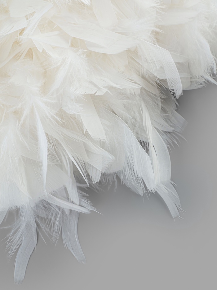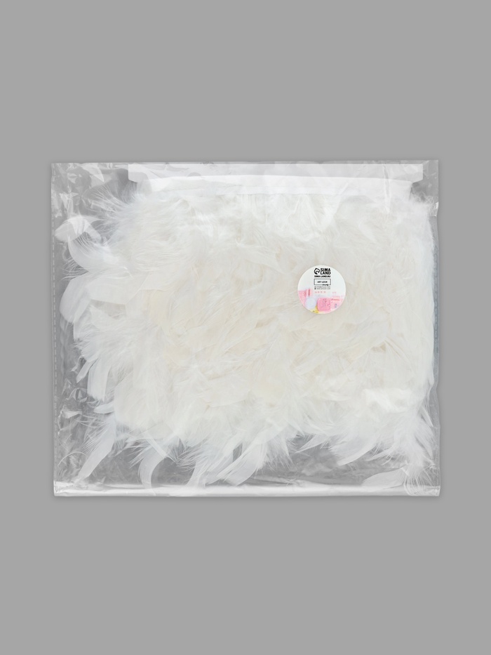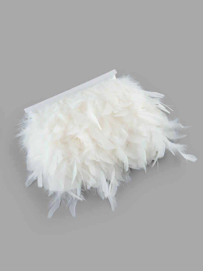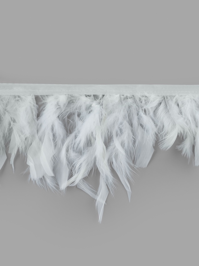 Декоративная бахрома из индюшачьих перьев для творчества и оформления. Пять метров белой тесьмы с натуральным оперением создаёт объёмные текстуры для костюмов, аксессуаров и интерьерного декора. Переливающаяся поверхность перьев меняет восприятие при разном освещении.