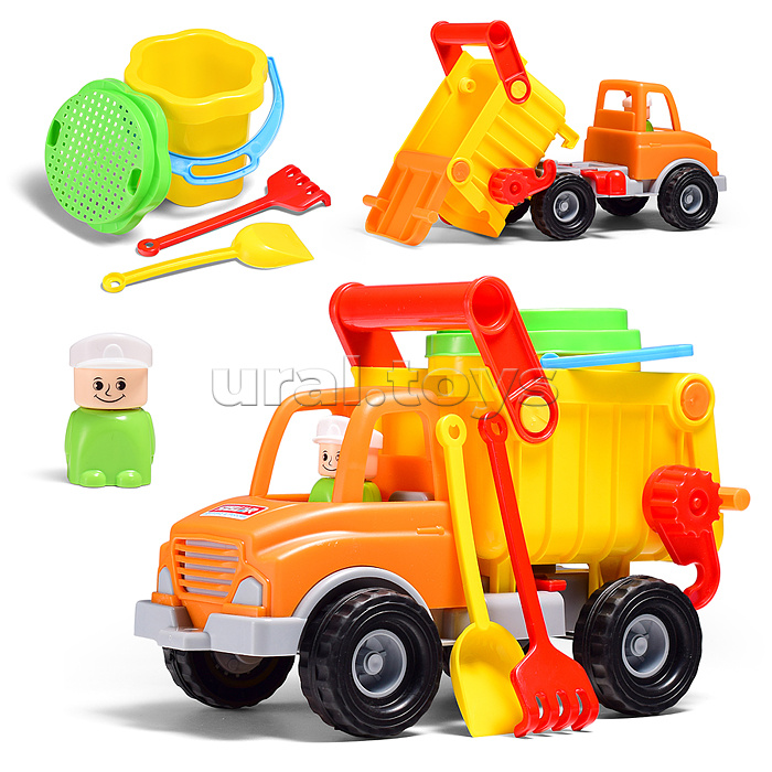 Код: 178564 Страна производитель: Россия Размеры упаковки: 27 x 13 x 21 см Количество в коробке: 9 • Размеры машины: 27 х 13 х 21 см. • В комплекте: лопатка, грабли, ведёрко с перфорированной крышкой. • Материал: пластмасса. • Соответствует требованиям безопасности продукции. • Для детей от 3-х лет. Комментарии к товару