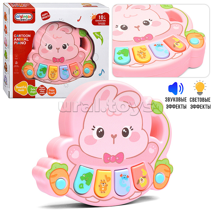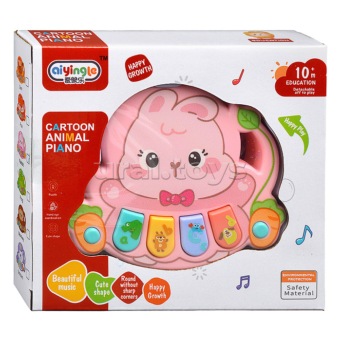 Код: 490892 Штрихкод: 6904111945349 Страна производитель: Китай Размеры упаковки: 3.5 x 14.5 x 13.5 см Количество в коробке: 144 • Размеры игрушки: 11х2.5х9,5 см. • Функции: - 4 нот пианино. - звуки животных. - забавные звуки. - весёлые мелодии. • Для работы нужны 2 батарейки "ААА" (не входят в комплект) • Материал: пластик. • Соответствует требованиям безопасности и стандартам качества продукции. • Для детей от 10 месяцев. Комментарии к товару