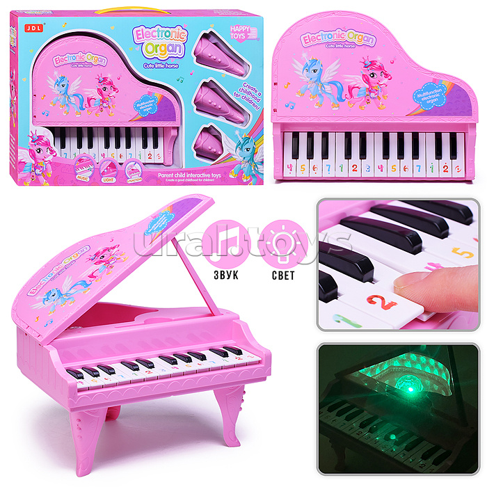Код: 489057 Штрихкод: 6904111868679 Страна производитель: Китай Размеры упаковки: 39 x 24 x 7 см Количество в коробке: 48 • Размеры игрушки: 23.5х19х26.5 см. • Функции: - 23 ноты пианино. - мелодии. - подсветка корпуса. • Для работы нужны 3 батарейки "АА" (не входят в комплект) • Материал: пластик. • Соответствует требованиям безопасности и стандартам качества продукции. • Для детей от 3-х лет. Комментарии к товару