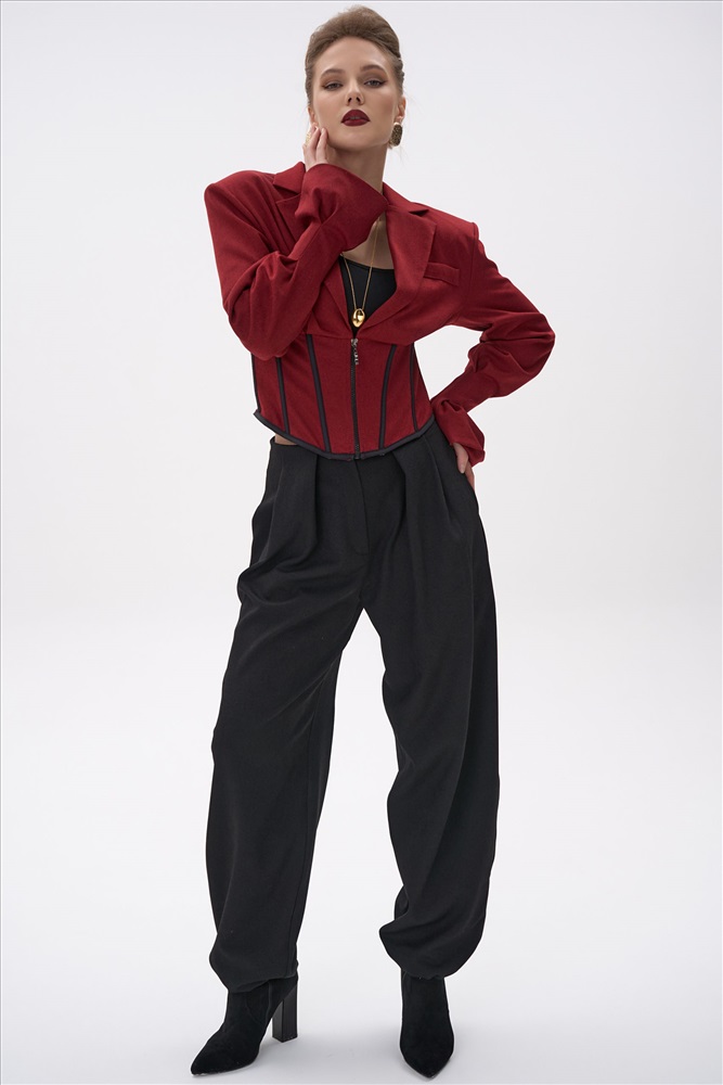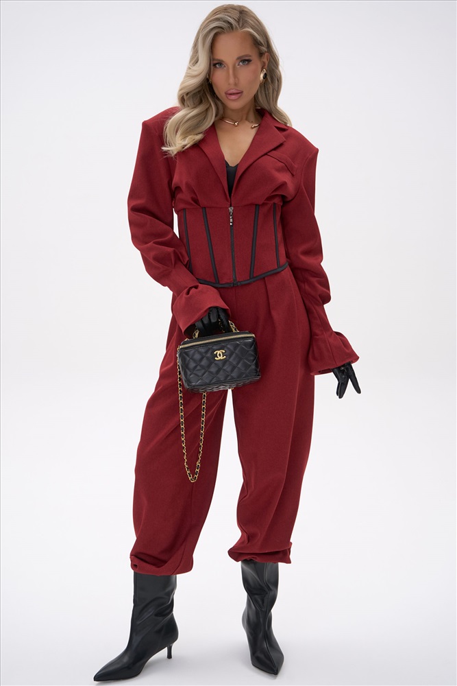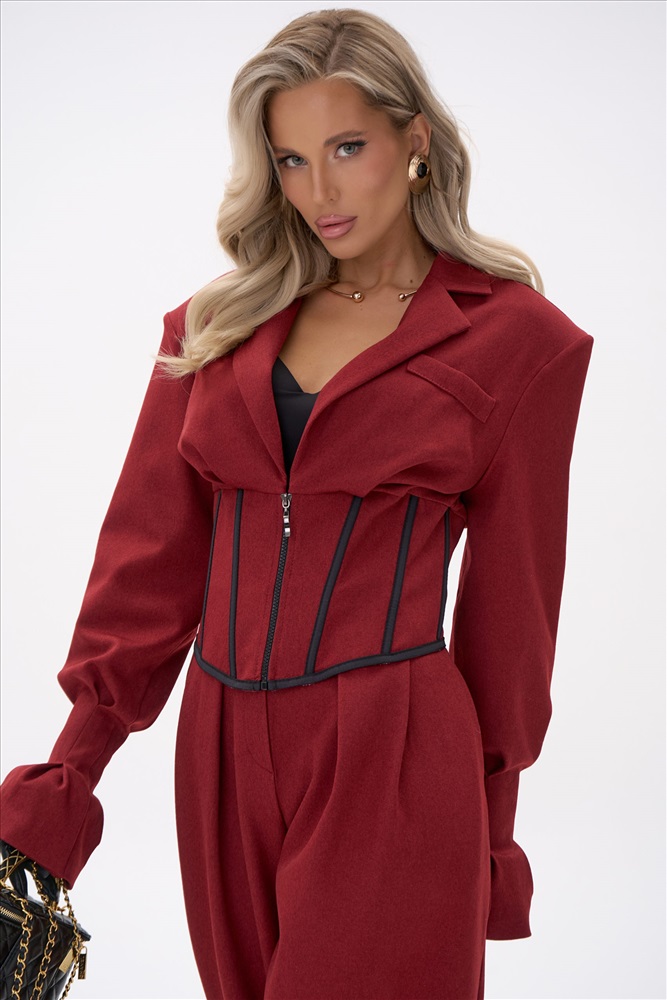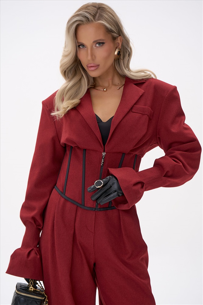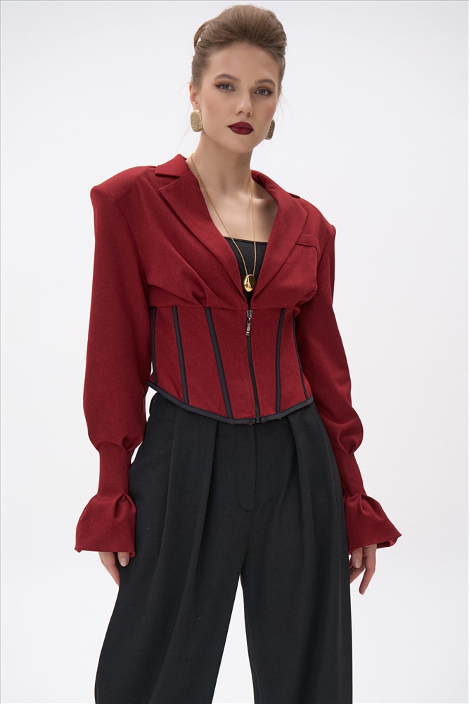 Жакет-корсет — современная интерпретация классического жакета с архитектурной посадкой и акцентом на талию. Модель сочетает строгость силуэта и чувственность корсетной конструкции.