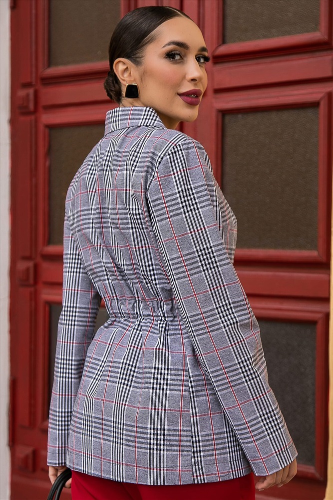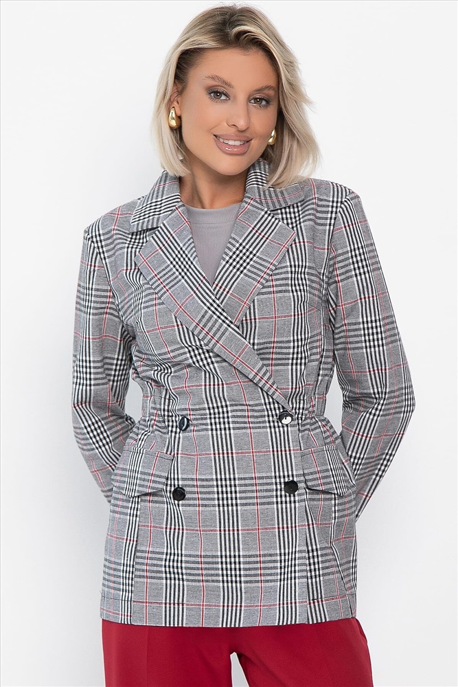 Состав : 95% полиэстер, 5% эластан Материал : костюмный "Барби" Цвет : Серый Принт : клетка Силуэт : приталенный Карманы : Отсутствуют Подкладка : Отсутствует Вид застежки : пуговицы Декоративные элементы : отсутствуют Длина : 44-73 см, 46-74 см, 48-74 см, 50-75 см, 52-75 см