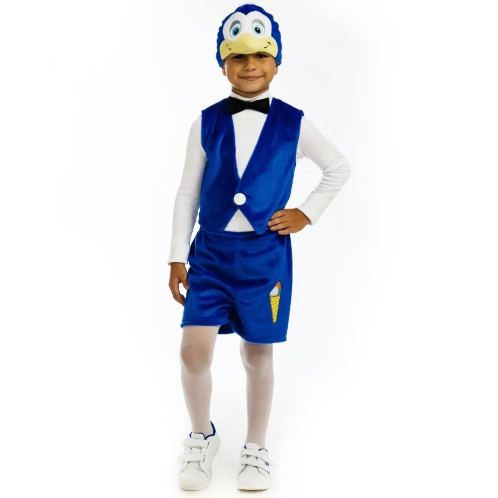 Страна: Беларусь Состав: 100% полиэстер Описание и замерыКостюм плюшевый для мальчика из 4 предметов: жилет, шорты, галстук-бабочка и головной убор.Жилет-фрак свободного кроя. Застегивается на липу, сверху расположена декоративная пуговица. Шорты свободного кроя. В поясе на внутренней резинке. В проймах подвернуты и прошиты. Галстук-бабочка на резинке. Головной убор - шапочка в виде мордочки пингвина. Внутри на марлевом подкладе. Сзади вшита тонкая резинка для дополнительной фиксации. Размер 122 Жилет: длина - 57 см, обхват груди - 63 см. Шорты: длина - 30 см, обхват талии - 40-60 см. Шапка - 53-55 см. Замеры выборочные, могут незначительно отличаться. Комментарии к товару