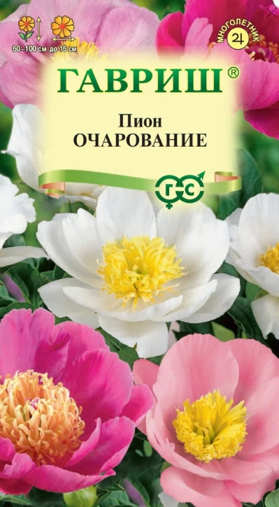 Крупноцветковый зимостойкий многолетник. Образует объемный цветущий кустик высотой 60-100 см. Цветки простые и полумахровые белой, розовой, кремовой, красной окраски, до 16 см в диаметре. Отличаются сильным приятным ароматом. Тычинки многочисленные, золотисто-желтые. Цветет в мае, плоды созревают в октябре. Плод — многолистовка, семена овальные, черные. Предпочитает солнечные места с суглинистой, слабокислой почвой (pH 6-6,5). Семена высевают осенью в открытый грунт на глубину 3-4 см. Хорошо развивается и цветет в северных широтах. Применяется как декоративное и лекарственное. Великолепно смотрится одиночно или группами. Комментарии к товару
