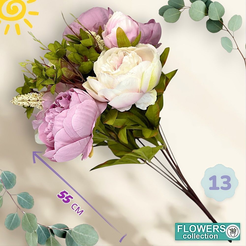 Вес уп.(гр)~: 160 Пионы, букет 13 веточек Материал: цветочный текстиль