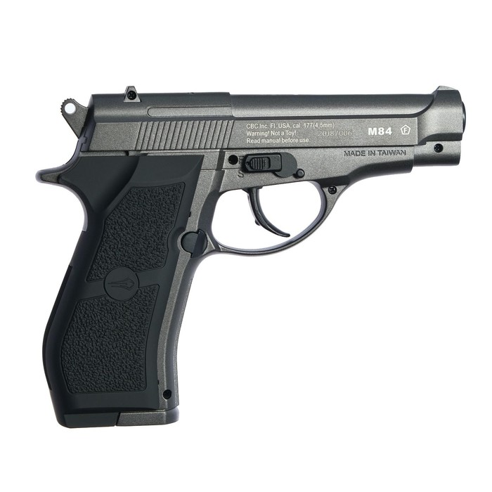 Габариты: 19 x 15 x 4 Страна: ТАЙВАНЬ (КИТАЙ) В боксе: 5 шт Состав: Пластик, силумин Материалы: пластик, силумин Фасовка: по 1 шт Индивидуальная упаковка: Цветная коробка Сертификат: СТР Вместимость магазина: 19 Скорость полёта пули, м/с: 120 Калибр: 4.5 мм Тип работы: Газобалонный Режим стрельбы: Полуавтоматический Источник энергии: 12-граммовые баллончики с газом CO₂ Система Blowback: Нет Разборный: Нет Крепление для оптического прицела: Нет Удобство и надежность достались модели от прообраза - Беретты 84. Особенность пистолета - сочетание эргономики и удобства использования. Благодаря усилиям конструкторов модель имеет максимальное сходство с боевым оригиналом - стильная и удобная рукоятка, короткий ствол, определенный вес и иные параметры выдержаны очень точно. Помимо внешних схожих черт, пневматика имеет 19-зарядный вместительный магазин. Невероятное удобство использования превосходит все ожидания, палец автоматически и органично ложится на крючок спуска. На рукоятке с лицевой и тыльной сторон есть рифленые декоративные вставки, позволяющие удерживать оружие еще более надежно. Монолитный корпус оружия не имеет движущихся элементов, исключение составляет лишь спусковой крючок. ДополнительноК пистолету подойдут шарики из данной категории. Газовые баллоны можно приобрести по данной ссылке. Комментарии к товару