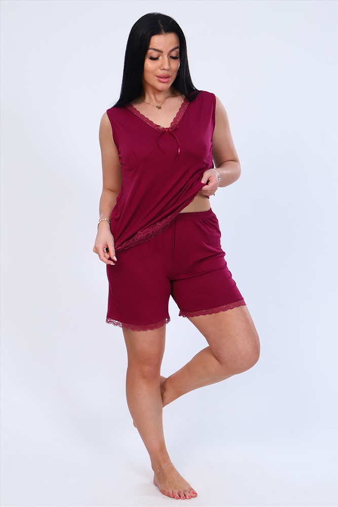 Состав: 95% вискоза 5% лайкра Модель: Пижама 35768 Тип товара: пижама с шортами Материал: вискоза | вискоза Бренд: Натали Суслова Карман: без карманов Назначение: для дома Особенности: на резинке Отделка: с кружевом Рисунок: однотонные Рукав: без рукава Сезонность: лето | осень | весна | зима Силуэт: полуприлегающий Стиль: домашний Воротник: без воротника Застежка: без застежки Пижама майка и шорты. Удобный домашний комплект из вискозы, приятной к телу и дышащей ткани. Представлен в двух расцветках насыщенный бордовый и темно-розовый, оттенка орхидея. Майка прилегающего силуэта. Лиф отрезной. По лифу и низу изделия отделка из эластичного кружева. Шорты полуприлегающего силуэта. Верх шорт на резинке. По низу шорт декоративная отделка из эластичного кружева. Таблица размеров и весаМайка
