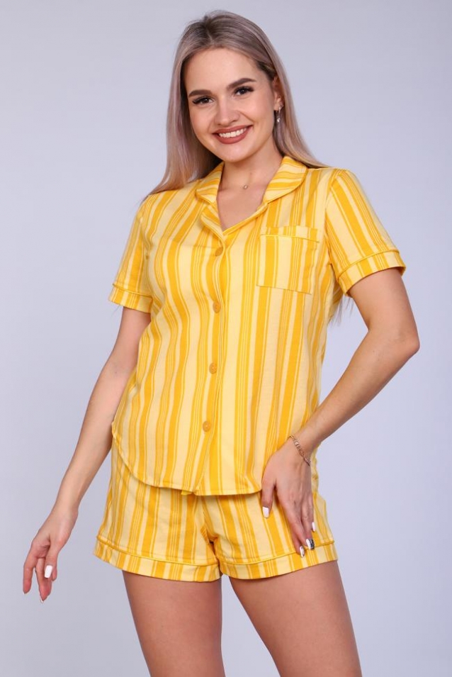 Уютная стильная пижама женская состоит из шорт и рубашки. Рубашка с короткими рукавами, полуприлегающего силуэта, на пуговицах, с воротником в английском стиле, обработанным атласным кантом. Шорты комфортной ширины. Классическая расцветка, натуральная ткань, полуприлегающий силуэт. Комплект женский может использоваться и как домашний костюм. Он также станет отличным приобретением для беременных и кормящих женщин, в подарок, маме, сестре, бабушке, подруге