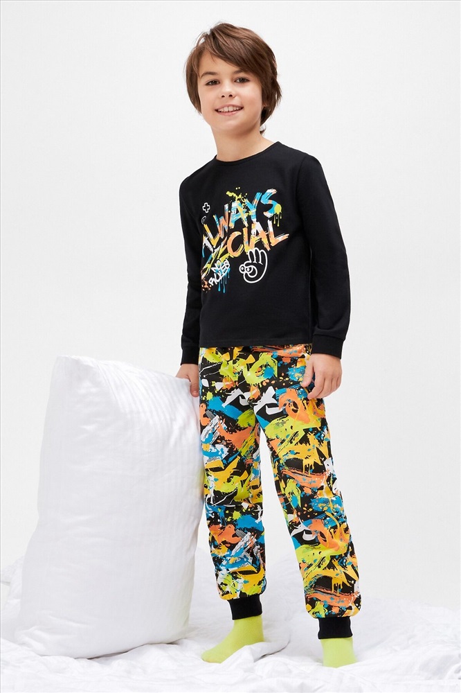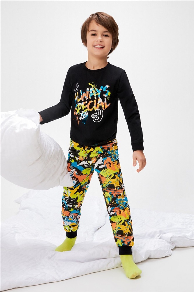 ID товара: 1063021 Состав: 100% Хлопок Сезон: Демисезон Длина: Полная Фасон: Прямой Рукав: длинные Декоративные элементы: Принт Основная ткань: Хлопок Страна бренда: Россия Страна производства: Китай Пижама детская для мальчиков Cherri набивка Комментарии к товару