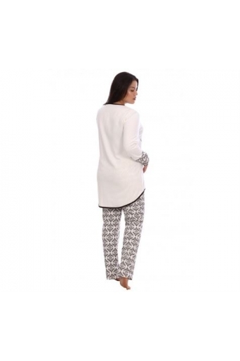 Комплект изготовлен из хлопковой ткани футер с начесом, состоит из кофты с длинным рукавом и брюк. Горловина, низ кофты и рукавов обработаны окантовкой. Вставка на полочке и манжеты выполнены из набивной ткани. На полочке оригинальный принт. Модель согреет Вас теплом, позволит сбросить накопленное напряжение за целый день и хорошо уснуть. Мы уверены, что этот комплект подарит Вам истинное наслаждение при каждодневном использовании. Комментарии к товару