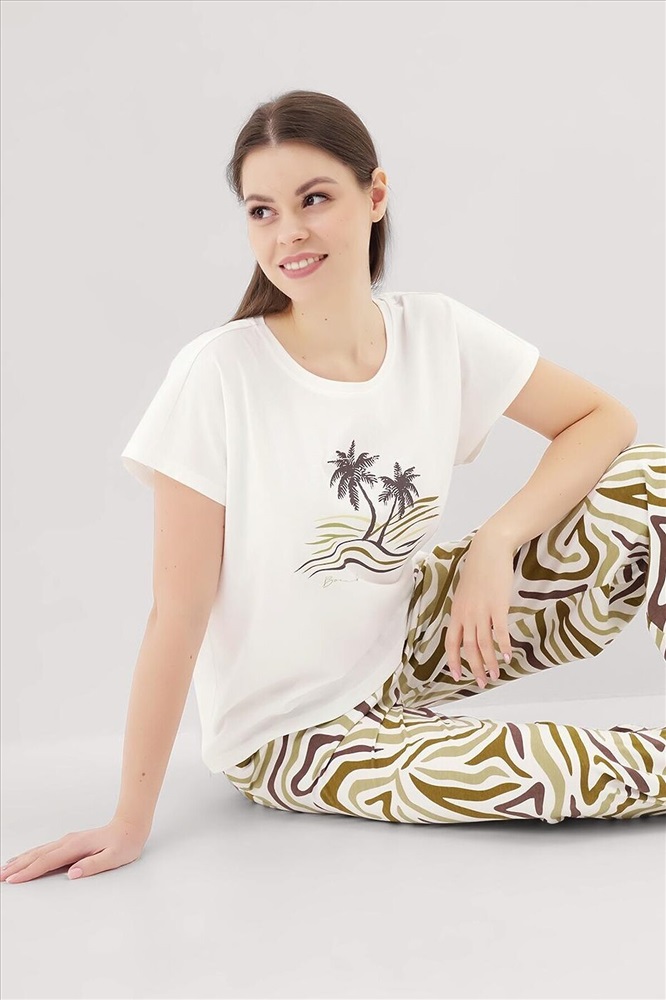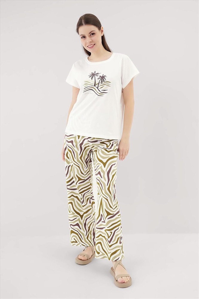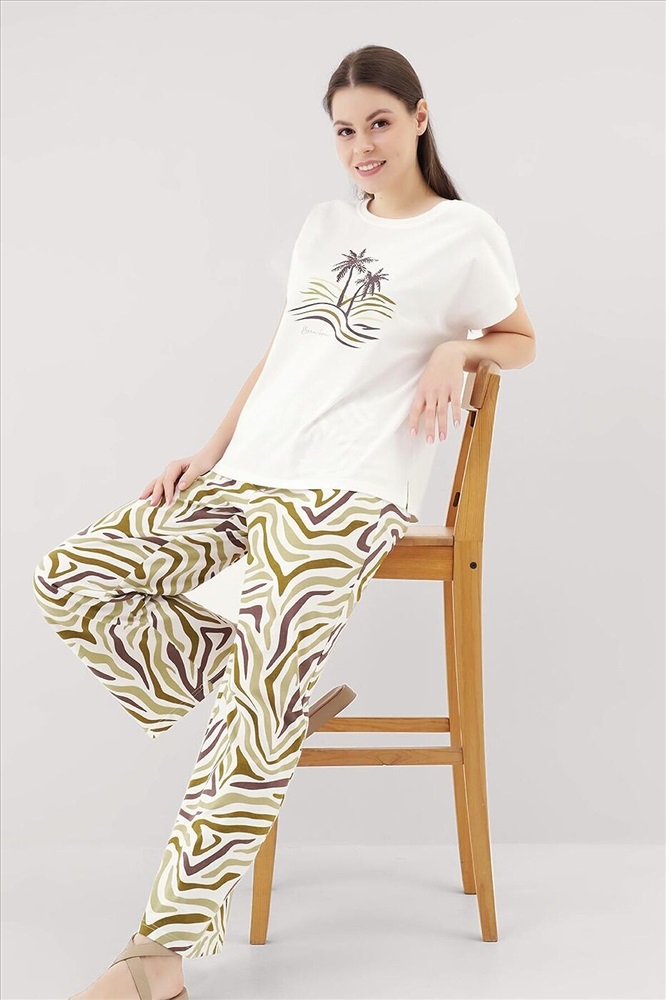 ID товара: 1112941 Состав: 100% хлопок Сезон: Весна/Лето Длина: Средняя Фасон: Повседневный Рукав: Короткие Вырез горловины: Округлый Рисунок: Фантазийный Основная ткань: Хлопок Стиль: Повседневный Страна бренда: Россия Страна производства: Россия Пижама из трикотажного полотна.Футболка прямого силуэта,короткий цельнокроеный рукав.Округлая горловина с обтачкой.Спереди принт.Сзади средний шов.Боковые разрезы.Брюки с притачным поясом на резинке,шнуром из окантовки.Боковые карманы с отрезным бочком. Комментарии к товару