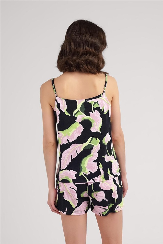 ID товара: 1122577 Состав: 50% Хлопок, 50% Модал Сезон: Весна/Лето Длина: Короткая Фасон: Повседневный Рукав: Без рукава Вырез горловины: V-образный Основная ткань: Хлопок Стиль: Повседневный Страна бренда: Россия Страна производства: Россия Пижама для дома и отдыха из хлопкового трикотажного полотна с добавлением модала. Майка с V-образным вырезом горловины. Узкая бретель с регулировкой длины. Горловина с внутренней обтачкой. Шорты с поясом на внутренней резинке. Комментарии к товару