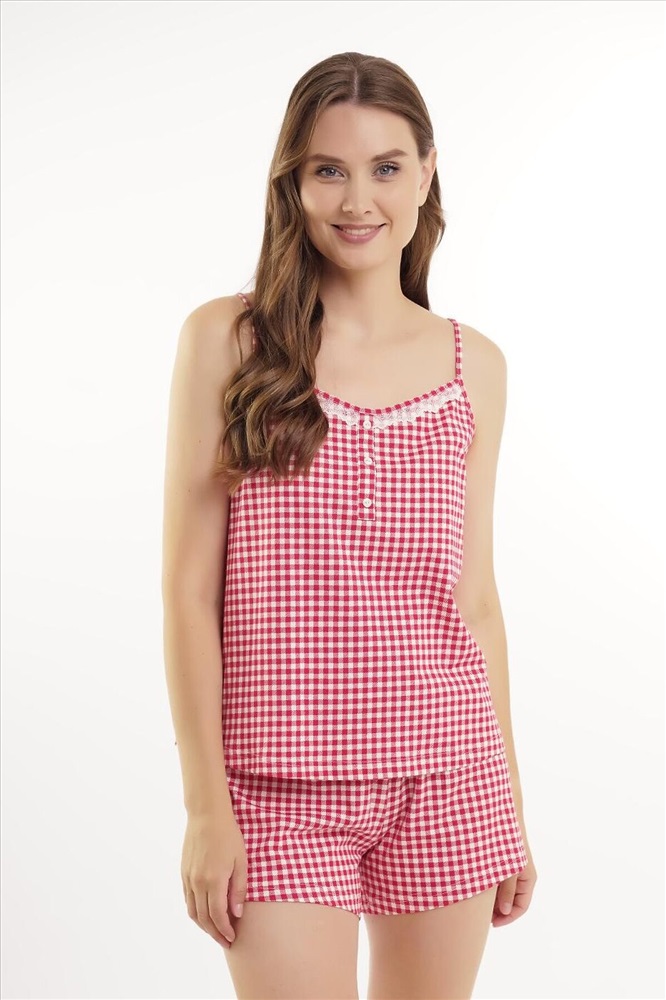 ID товара: 1215090 Состав: 100% Хлопок Сезон: Демисезон Длина: Средняя Фасон: Прямой Рукав: Без рукавов Декоративные элементы: Принт Основная ткань: Хлопок Страна бренда: Россия Страна производства: Россия Пижама из хлопкового трикотажного полотна. Майка на узких бретелях. По горловине и пройме окантовка. По переду нефункциональная планка с пуговицами, вырез горловины декорирован кружевом. На спинке принт. Шорты укороченные с поясом на внутренней резинке. Комментарии к товару