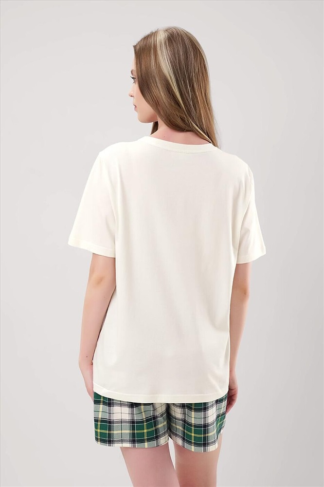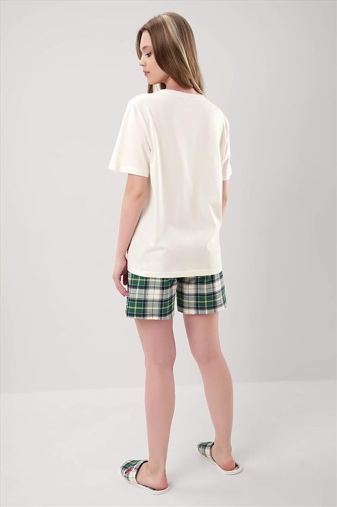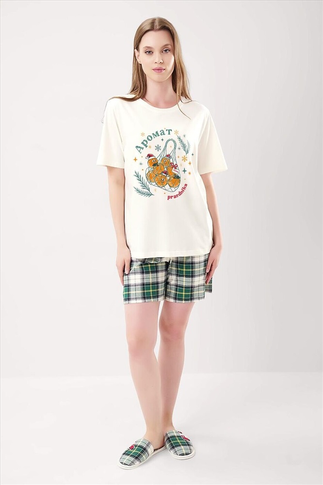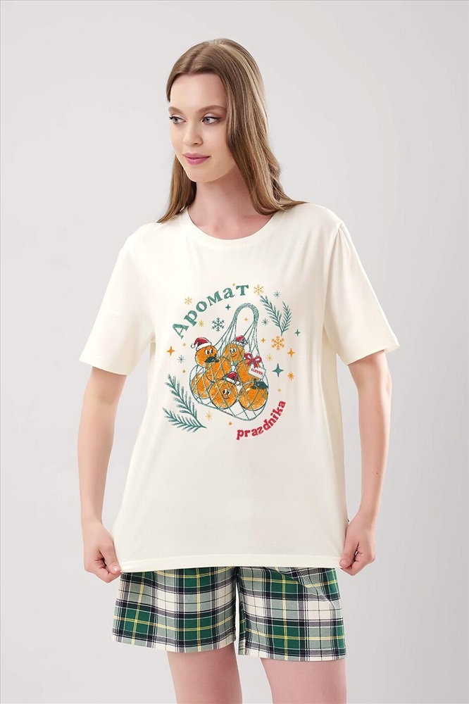 ID товара: 1215154 Состав: 100% Хлопок Сезон: Демисезон Длина: Средняя Фасон: Свободный Рукав: Короткие Декоративные элементы: Принт Основная ткань: Хлопок Страна бренда: Россия Страна производства: Россия Пижама из хлопкового трикотажного полотна. Футболка прямого кроя. Короткий втачной рукав. Округлая горловина с обтачкой. Спереди принт. В боковом шве вшивка. Шорты из трикотажного полотна с карбоном прямые, пояс на внутренней резинке с киперной лентой. Комментарии к товару