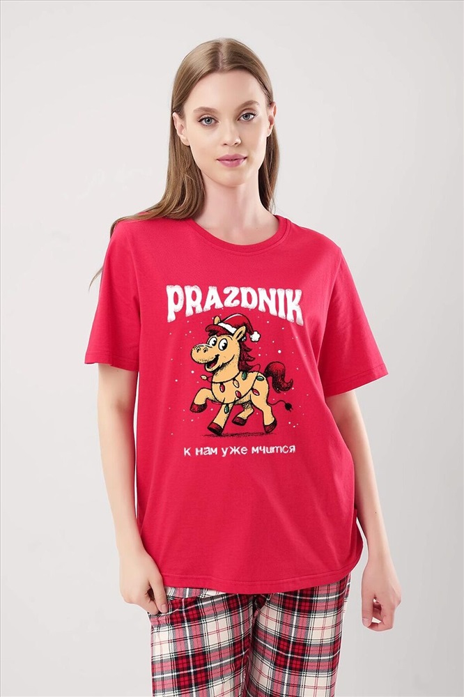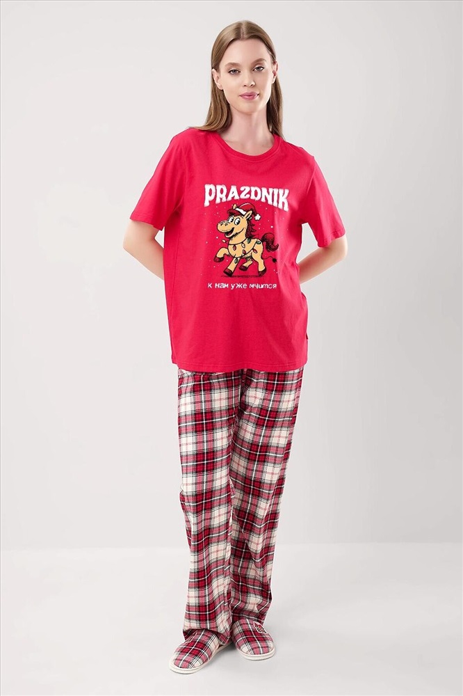 ID товара: 1215160 Состав: 100% Хлопок Сезон: Демисезон Длина: Полная Фасон: Свободный Рукав: Короткие Декоративные элементы: Принт Основная ткань: Хлопок Страна бренда: Россия Страна производства: Россия Пижама из хлопкового трикотажного полотна. Футболка прямого кроя. Короткий втачной рукав. Округлая горловина с обтачкой. Спереди принт. В боковом шве вшивка. Брюки из трикотажного полотна с карбоном прямые, пояс на внутренней резинке с киперной лентой. Комментарии к товару