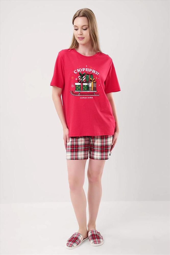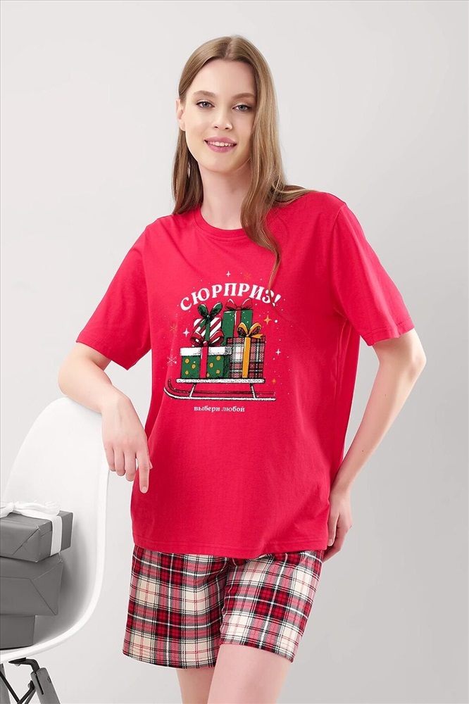 ID товара: 1215161 Состав: 100% Хлопок Сезон: Демисезон Длина: Средняя Фасон: Свободный Рукав: Короткие Декоративные элементы: Принт Основная ткань: Хлопок Страна бренда: Россия Страна производства: Россия Пижама из хлопкового трикотажного полотна. Футболка прямого кроя. Короткий втачной рукав. Округлая горловина с обтачкой. Спереди принт. В боковом шве вшивка. Шорты из трикотажного полотна с карбоном прямые, пояс на внутренней резинке с киперной лентой. Комментарии к товару