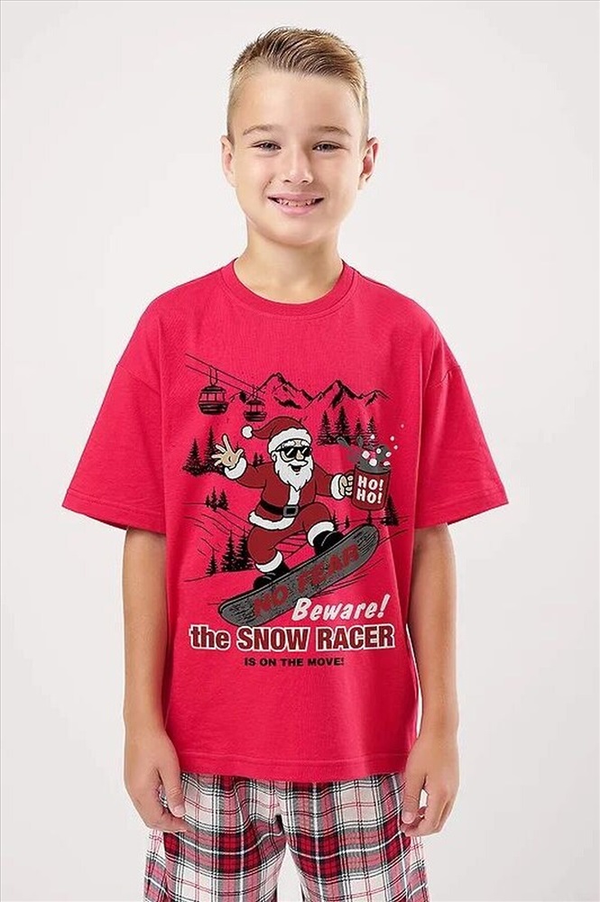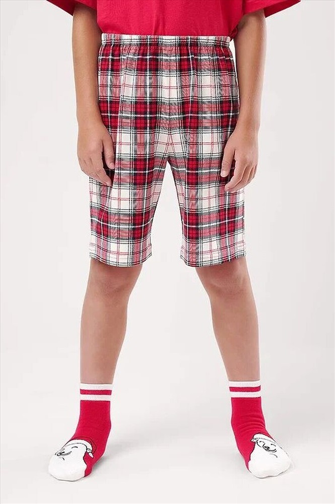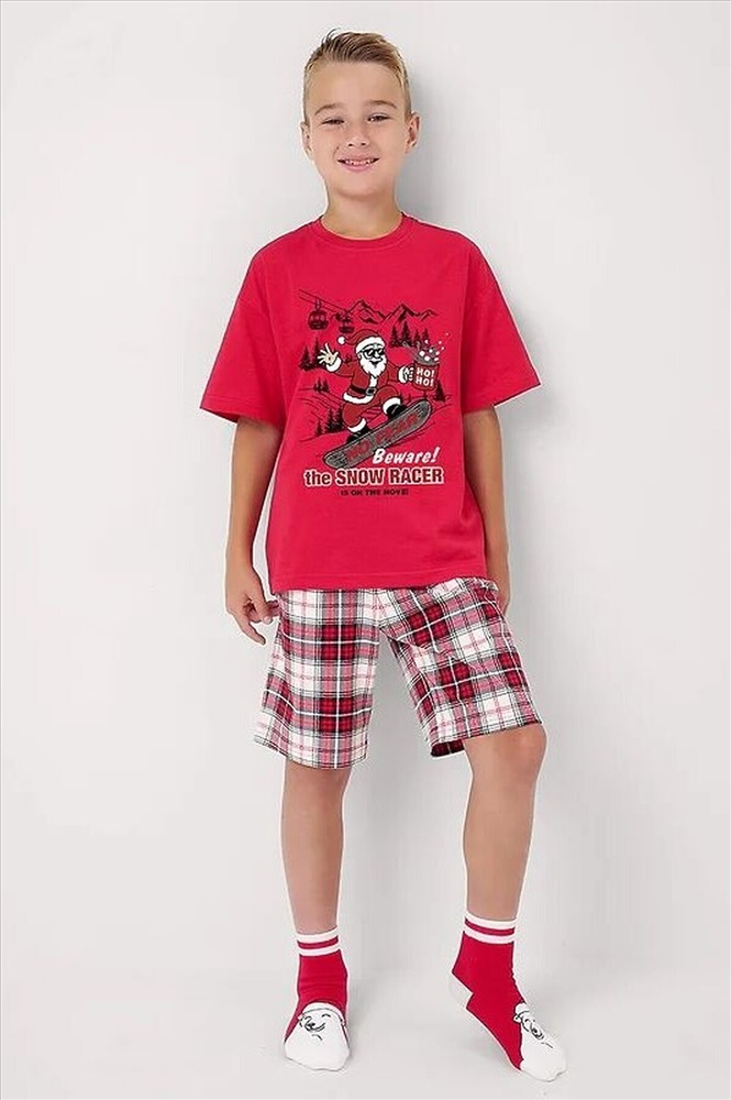 ID товара: 1217537 Состав: 100% Хлопок Сезон: Осень/Зима Длина: Средняя Фасон: Свободный крой Рукав: Короткие Декоративные элементы: Принт Основная ткань: Хлопок Страна бренда: Россия Страна производства: Россия Новогодняя пижама для подростков, состоящая из футболки и шорт. Стильная футболка свободного кроя дополнена оригинальным принтом. Шорты прямые средней длины с эластичным удобным поясом, выполнены из хлопкового полотна в клетку. Комментарии к товару