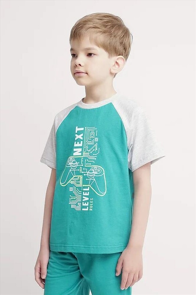 ID товара: 1218572 Состав: 100% Хлопок Сезон: Демисезон Длина: Средняя Фасон: Прямой Рукав: короткие Декоративные элементы: Принт Основная ткань: Хлопок Страна бренда: Россия Страна производства: Россия Комплект хлопковой пижамы из футболки и шорт. Футболка свободного кроя дополнена эластичной горловиной и стильным принтом. Шорты среднего объема, эластичный пояс обеспечит комфорт и идеальную посадку. Комментарии к товару