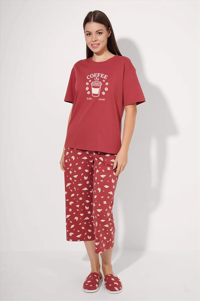 ID товара: 1232654 Состав: 100%Хлопок Сезон: Весна/Лето Длина: Длинная Фасон: Прямой Рукав: Короткий Вид застежки: Нет Вырез горловины: Округлый Рисунок: Фантазийный Основная ткань: Хлопок Стиль: Повседневный Страна бренда: Россия Страна производства: Россия Набор одежды для дома и отдыха из хлопкового трикотажного полотна. Футболка прямого кроя. Короткий втачной рукав. Округлая горловина с обтачкой. Спереди принт. Бриджи с поясом на внутренней резинке, спереди нашивка. Боковые карманы с отрезным бочком. Комментарии к товару
