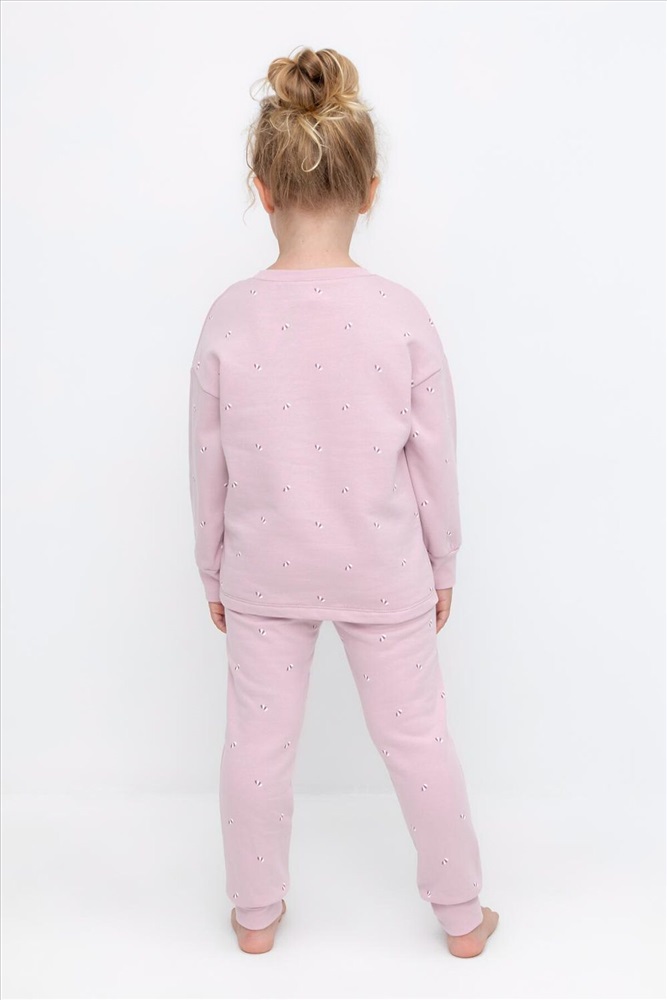 Тёплая пижама с начёсом из натурального хлопка. Джемпер с длинными спущенными рукавами и брюки с эластичной резинкой в поясе. Мягкие манжеты на рукавах и по низу брюк. Оригинальные набивка и принт выполнены из стойких гипоаллергенных текстильных красителей. Изделие сохраняет цвет и форму после многократных стирок. Все трикотажные полотна производятся в соответствии с нормами швейцарского сертификата ЭкоТекс.